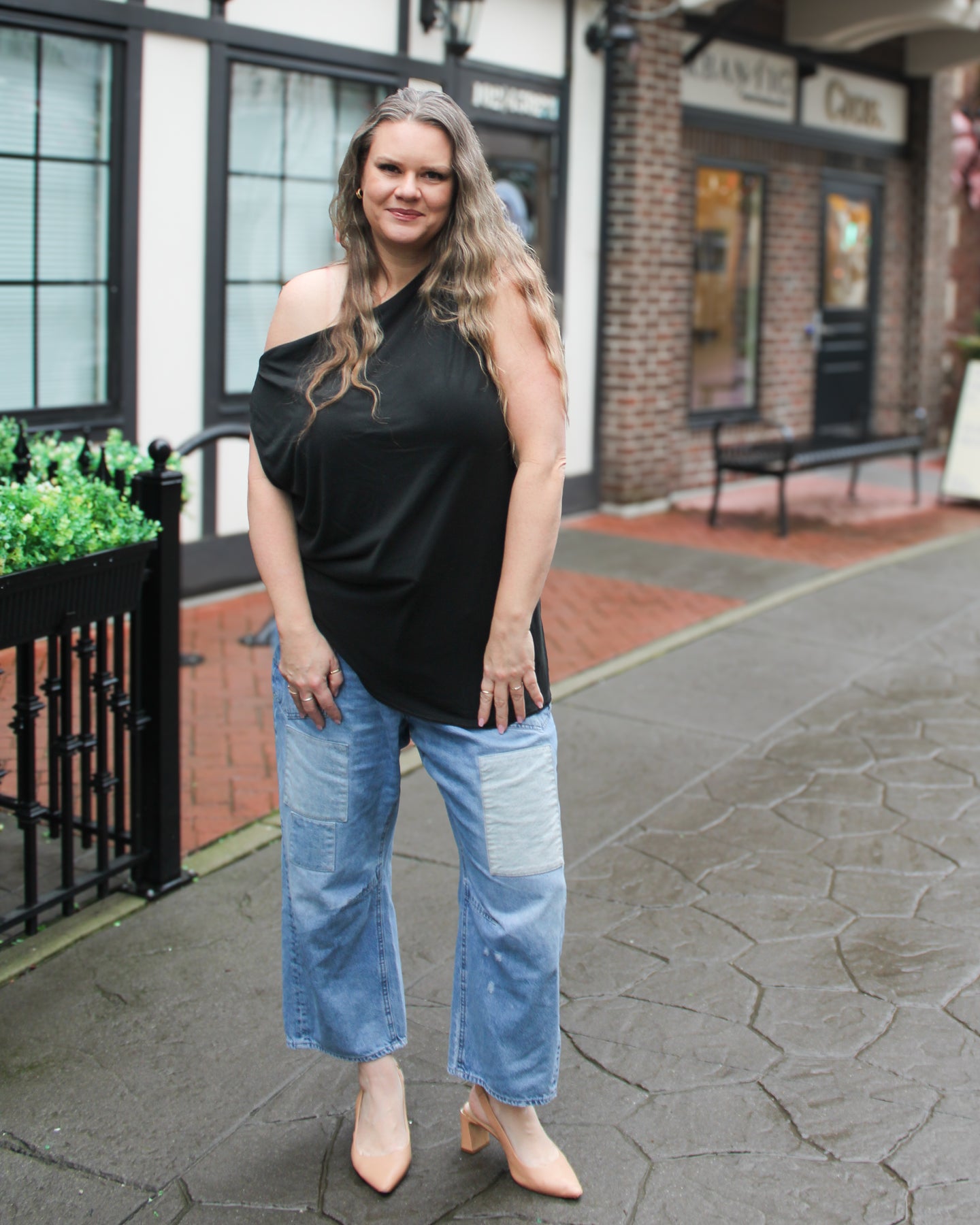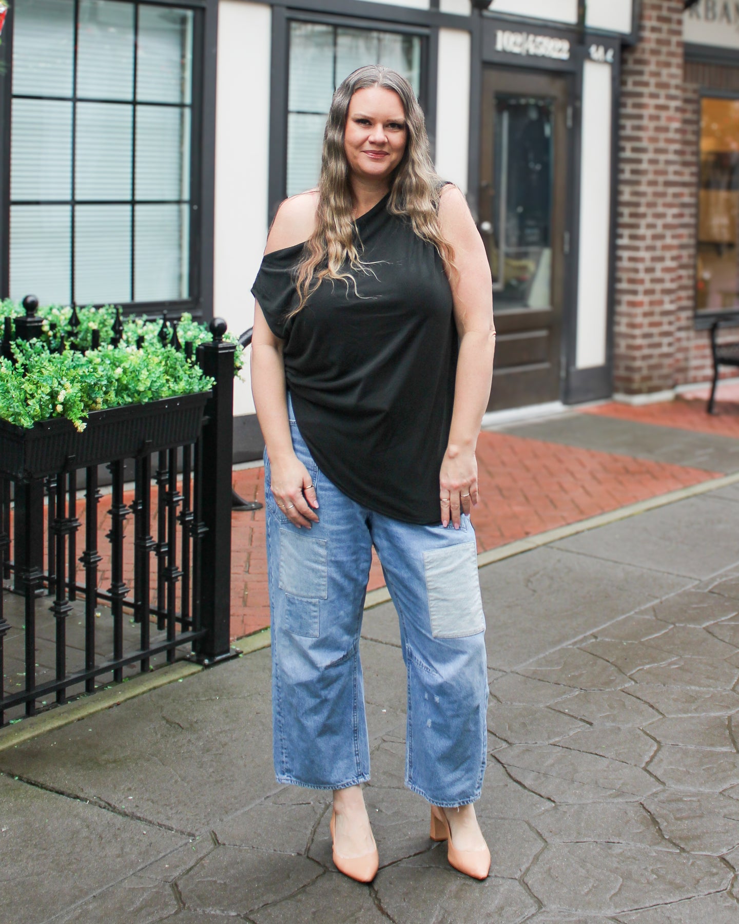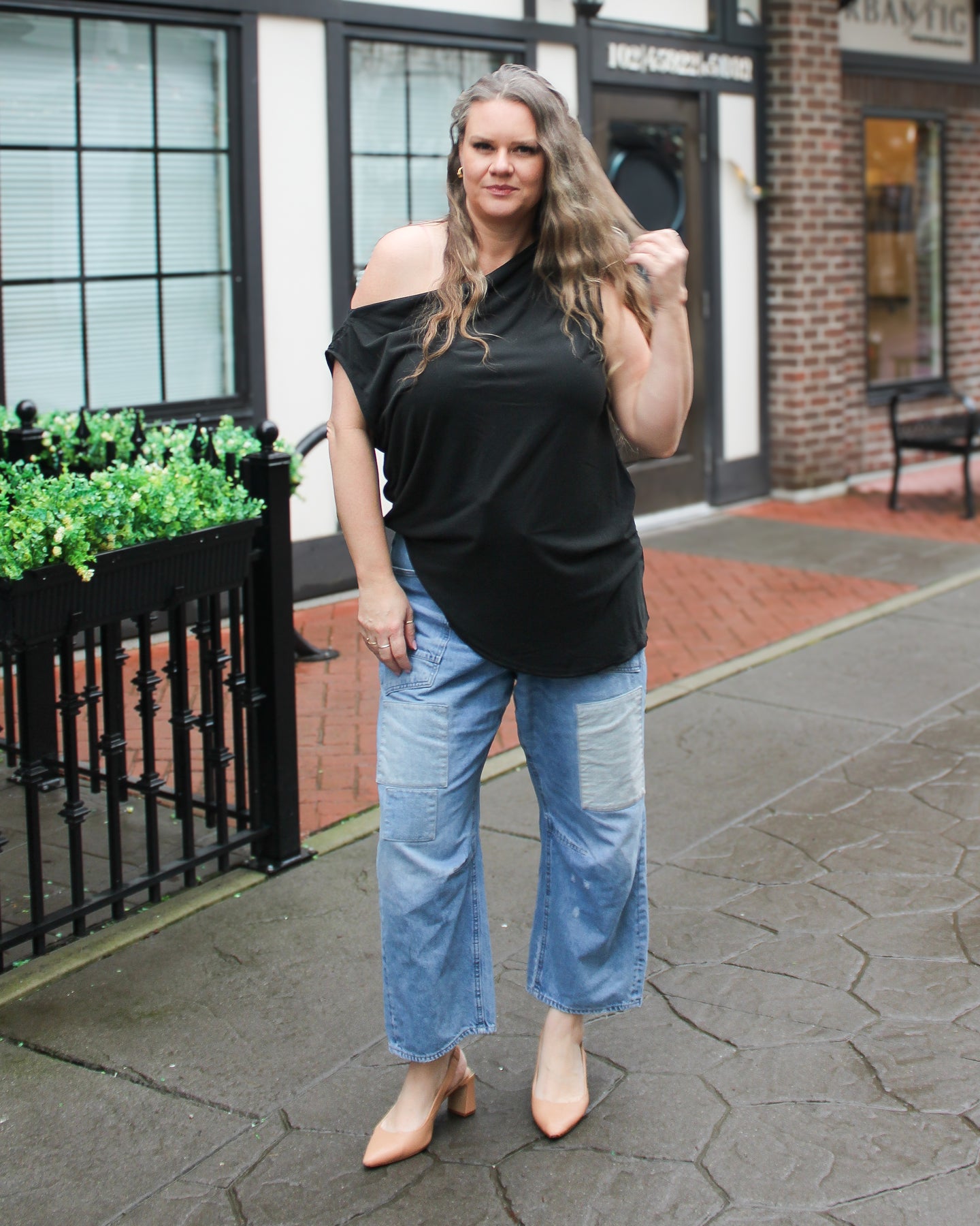 Fit: Relaxed, drapey, longline Features: Slinky jersey fabrication, off-the-shoulder neckline, ruched details, asymmetrical hem