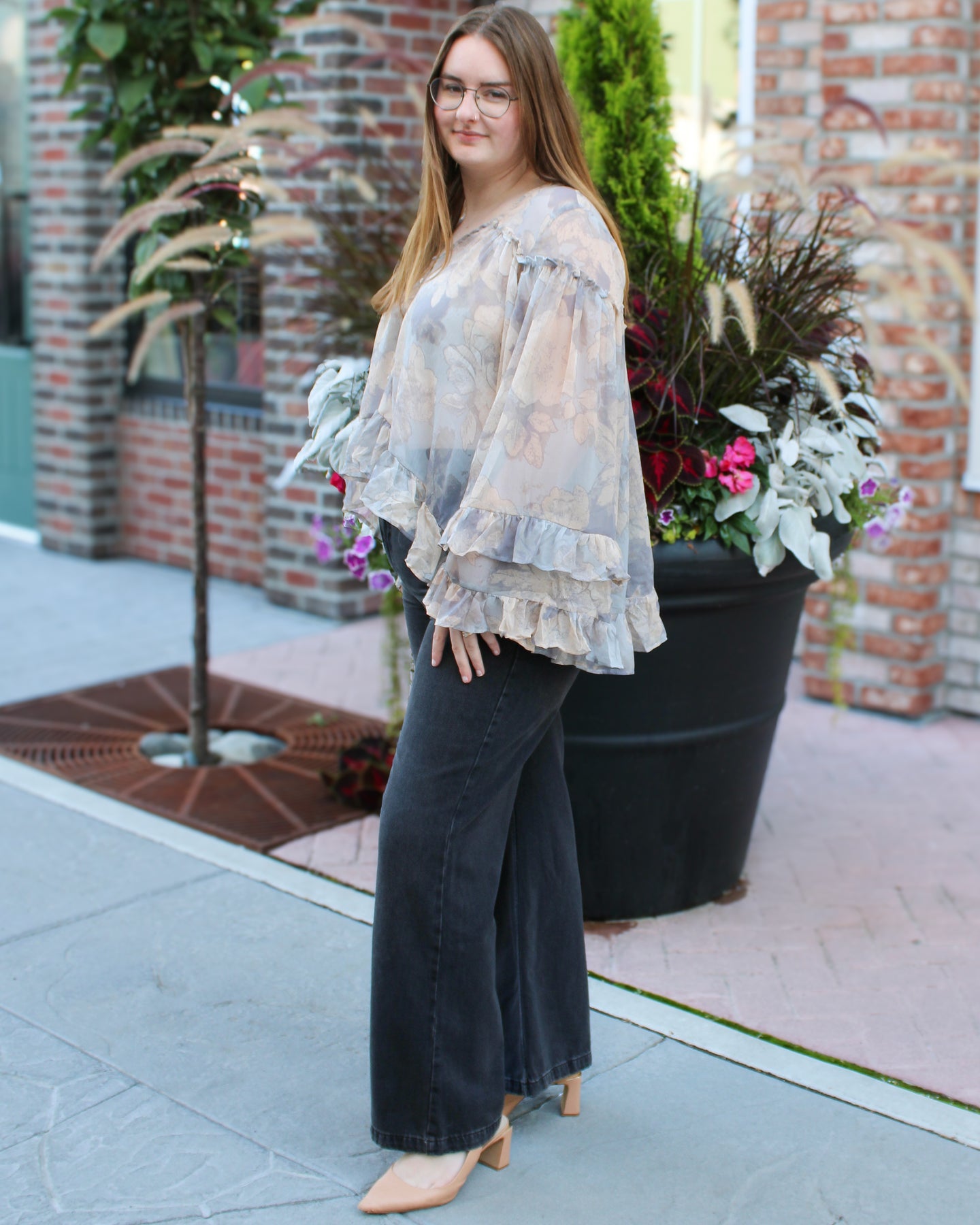 Flowy wide sleeves and a voluminous silhouette embrace the brand's boho vibes in this semisheer chiffon top trimmed with frilly ruffles