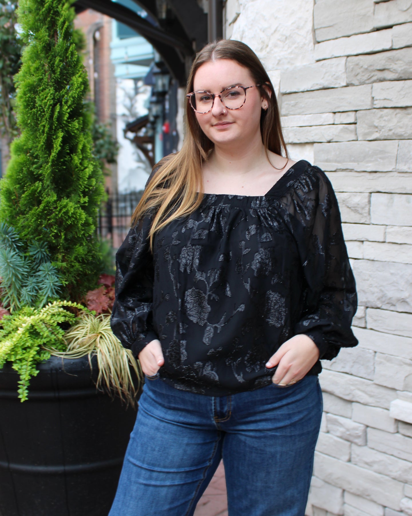 Channel sophisticated style in this flowy blouse, defined by a chic square neckline. Featuring long puff sleeves with fitted cuffs, it creates a polished silhouette, while the burnout chiffon fabric adds stunning texture and visual interest to your look.