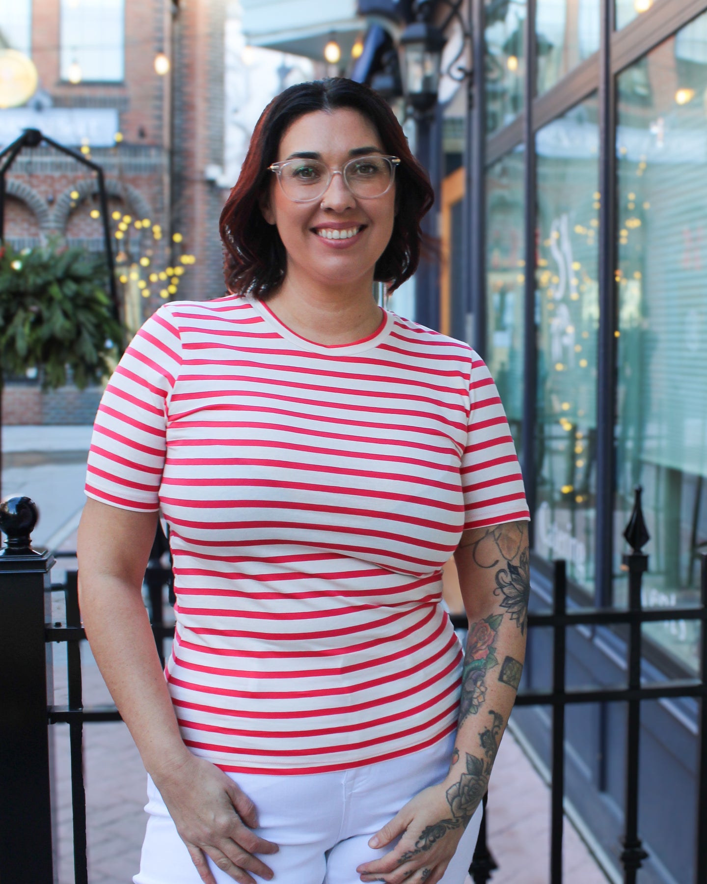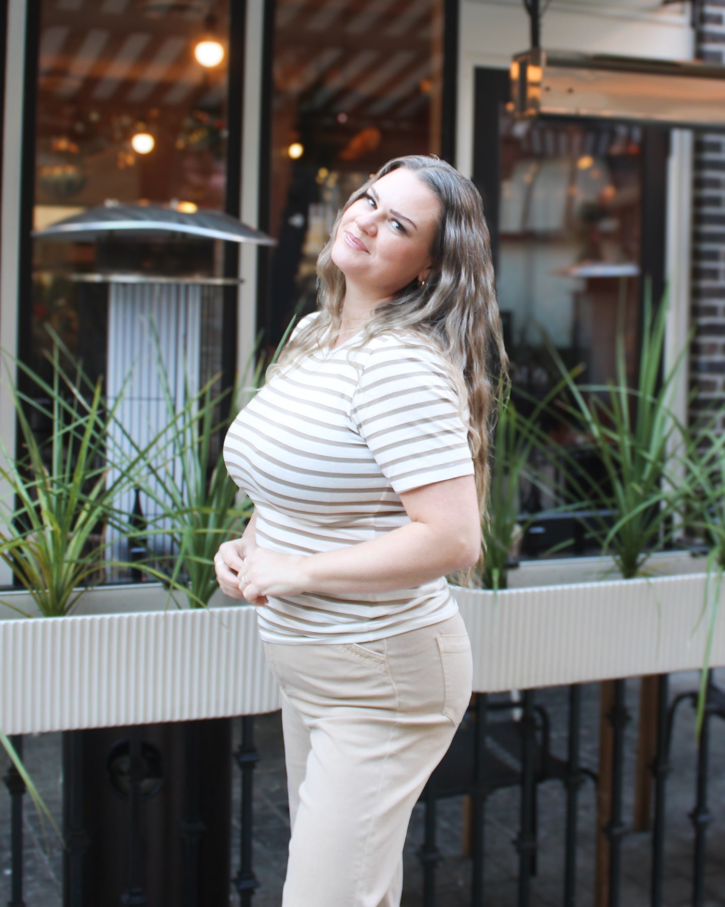 Chic and comfy the Mira striped short sleeve takes a simple tee and elevates it. The Mira tee is the perfect fitted tee to throw on with your favourite jeans.
