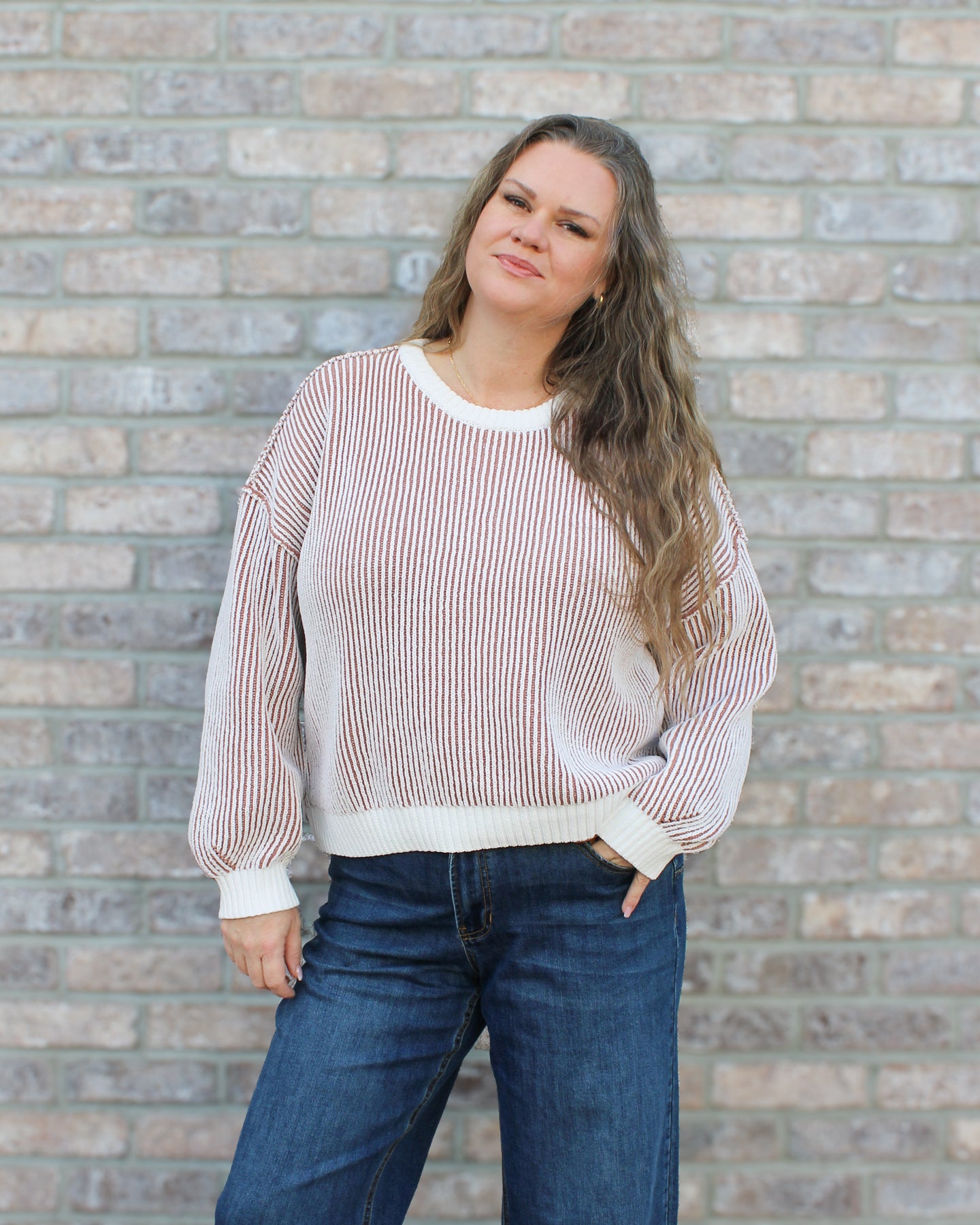 Crew Neck Sweater with Side Slits