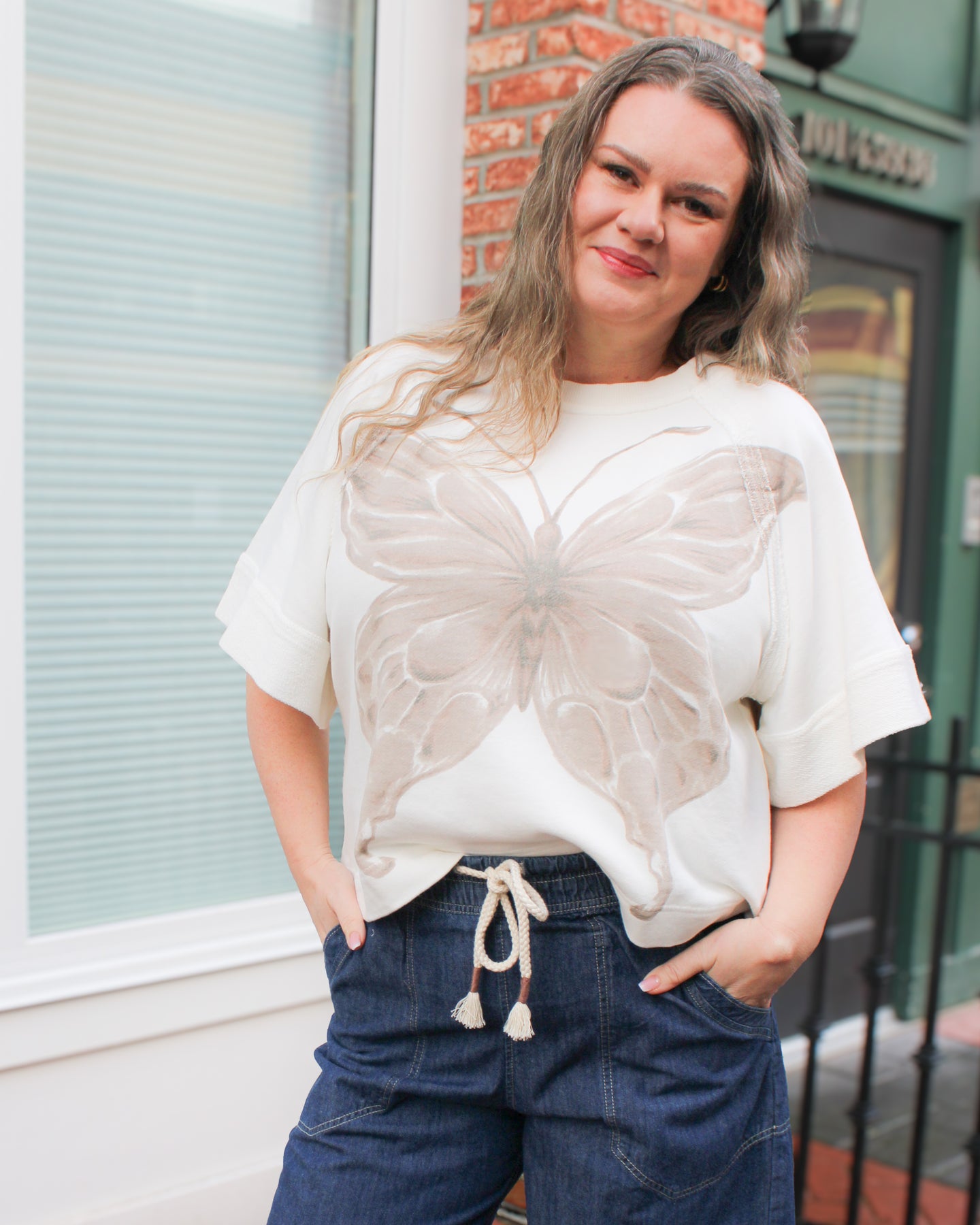 Add a touch of charm to your ensemble with this playful pullover, featuring a soft cotton fabrication, a boxy, slightly cropped silhouette, and a whimsical graphic design.
